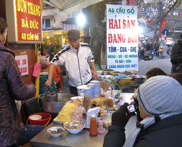 With the combination of Vietnamese tonal language (which makes it bloody hard to learn even the simplest phrase) and lack of English among Vietnamese, it’s wise to hone up your miming (and drawing) skills before hitting the sidewalk for food.