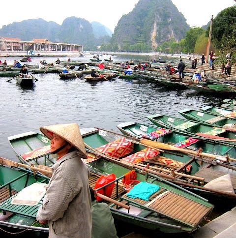 The limestone karsts that line the river in Tam Coc is often compared to that of Halong Bay. As a matter of fact, the Tam Coc riverway is often referred to as Halong Bay on Land (or Halong Bay on River).
